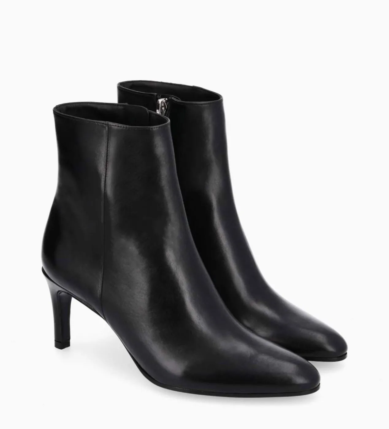 L’alliance parfaite entre le luxe et la sobriété se matérialise dans les magnifiques bottines Stella. Réalisées avec tout le savoir-faire Free Lance dans un sublime cuir brillant noir, elles subliment le pied avec une distinction sans pareille. Dotées d’un talon droit de 6,5 cm, elles offrent une cambrure parfaite et deviennent les complices idéales du quotidien. Ces bottines au bout amande fabriquées en France se ferment par un zip intérieur.
