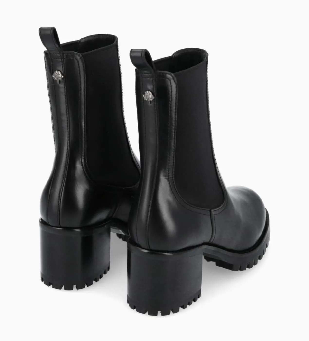 La bottine JADE fusionne avec élégance l’esprit biker et les détails du Chelsea. En cuir lisse noir elle offre une silhouette épurée aux lignes audacieuses posée sur une semelle crantée et un talon lamellé cuir. Parfaitement ajustée à la cheville et dotée d’élastiques latéraux, elle arbore fièrement la signature inimitable de FreeLance pour un style résolument rock et audacieux. Equilibre parfait entre robustesse et féminité, la Jade se révèle être l’alliée idéale pour toutes vos escapades citadines.