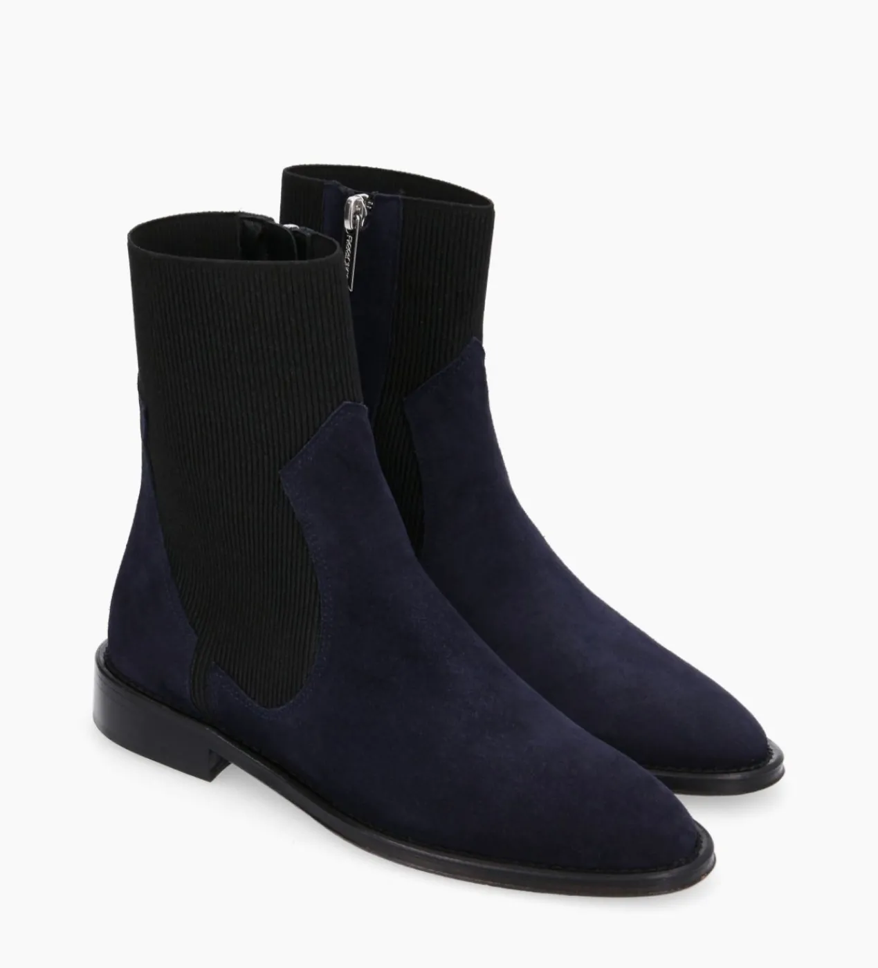 Bottines plates en cuir velours marine