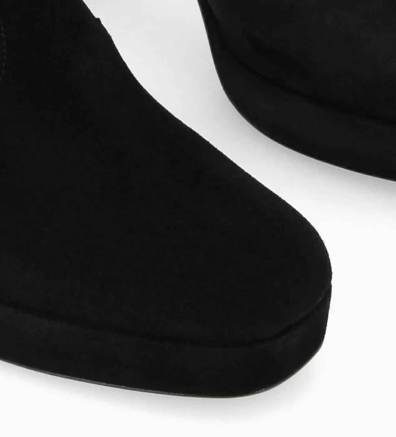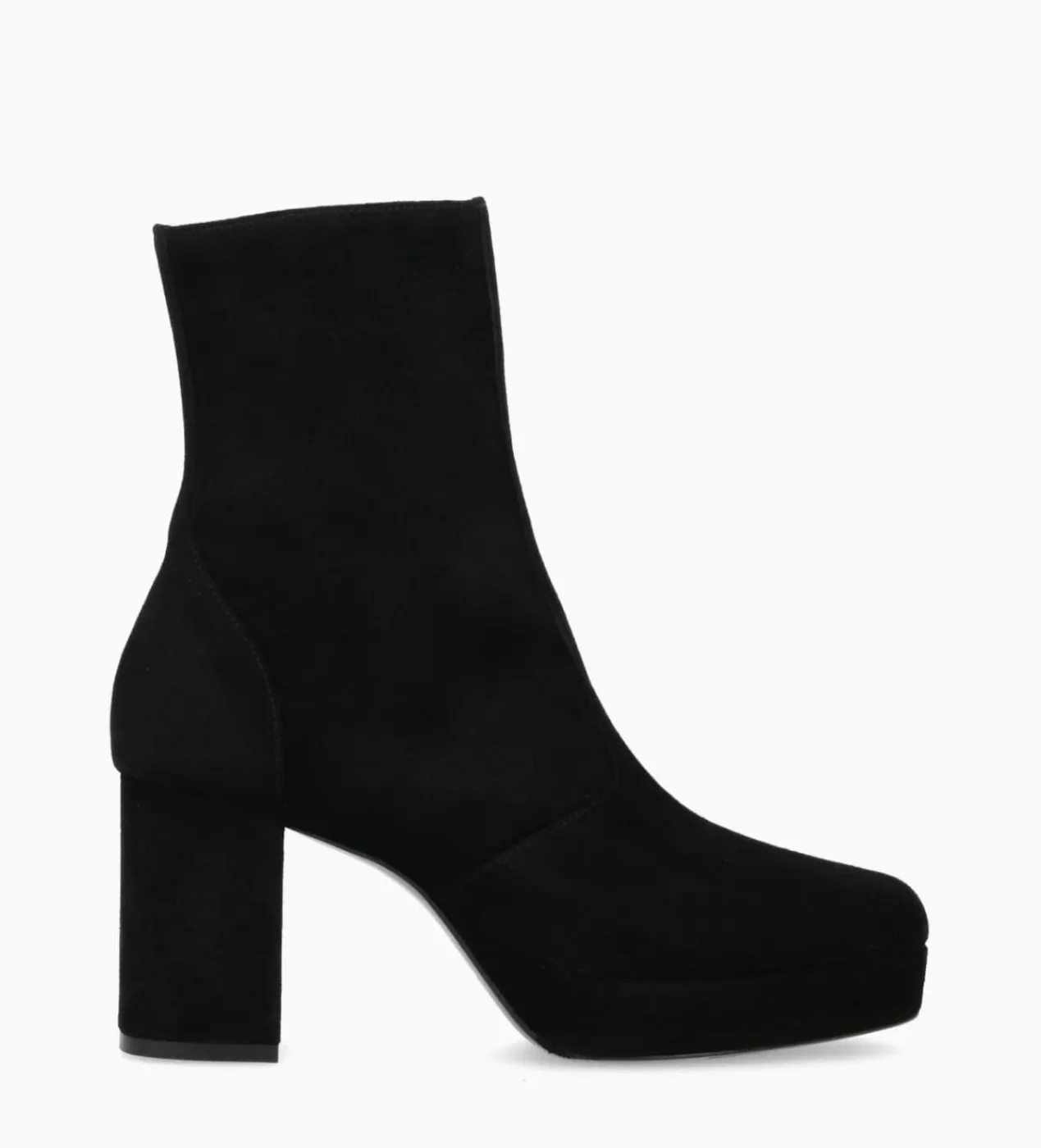 Véritable héritage des archives de la maison FreeLance, Carlotta se différencie par son style largement inspiré des années 80. Dotée d’un bout légèrement carré et d’un talon bloc, cette bottine présente une ligne singulière réhaussée par une plateforme de 25mm. Fabriquée en France en cuir velours noir selon les savoir-faire de la maison, Carlotta se distingue tant par son élégance que son caractère intemporel.