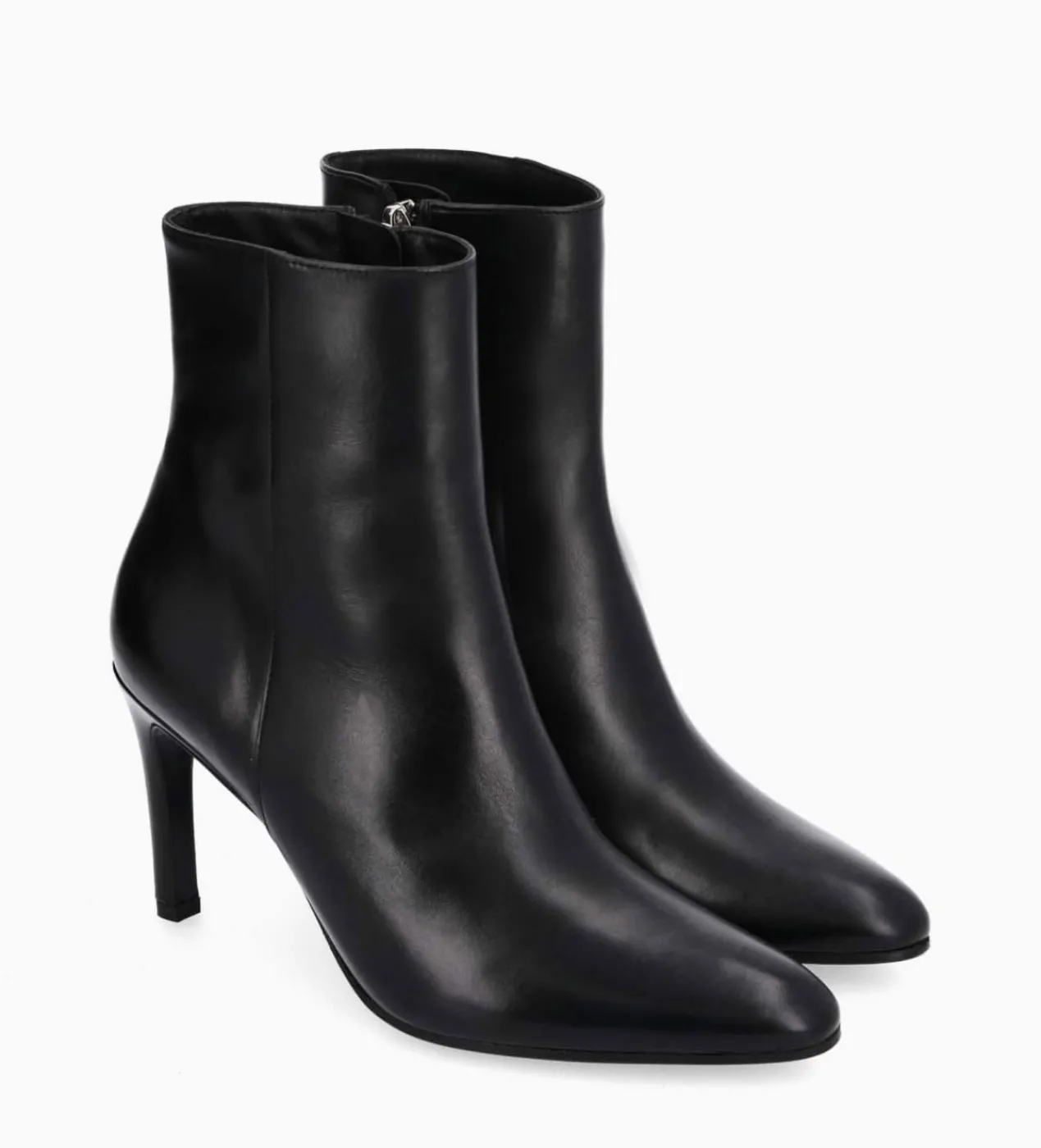 Bottines en cuir brillant noir à talon droit