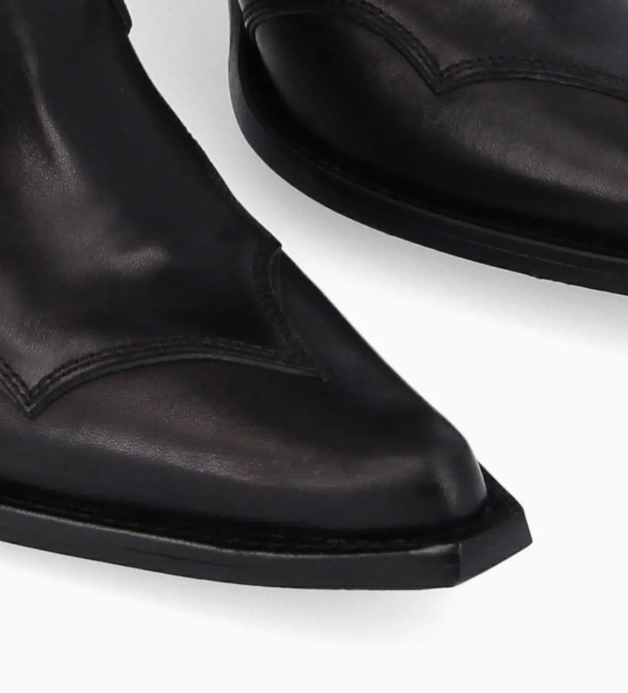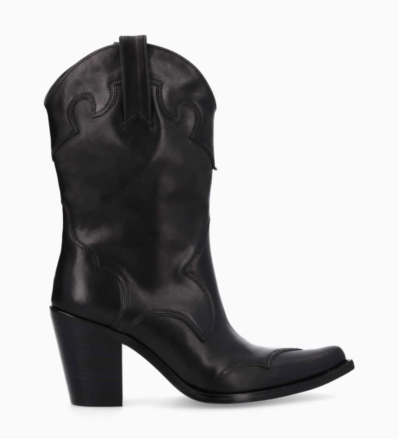 Free Lance enrichit sa collection de Santiags avec les Andy, des bottines chics et racées imaginées pour sublimer tous les looks. Fabriquées dans un splendide cuir noir, elles affichent un jeu de surpiqûres ton sur ton qui rehaussent leur style avec assurance. Ces bottines avec semelle cuir, reposent sur une trépointe à bout carré et un talon haut de 8 cm taillé en biseau. Fabriquées en France, ces bottines incarnent l’esprit d’une femme indépendante et engagée, résolument Free Lance. Les Andy sont idéales pour accessoiriser vos jupes, tailleurs, robes et pantalons.