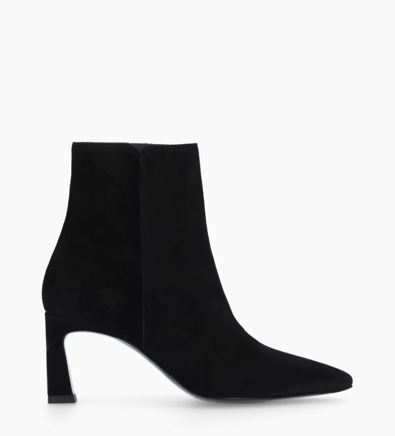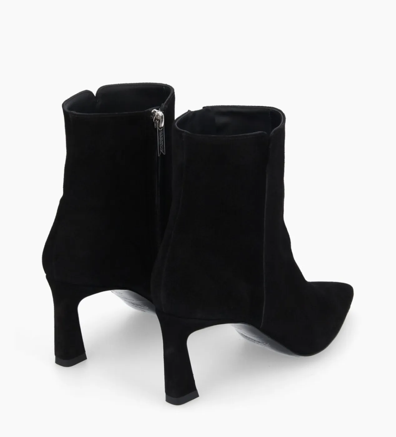 Nouvelle création de la saison, la bottine Cathleen s’affirme dans une version des plus séduisantes dans un somptueux cuir velours noir. Dotée d’un bout pointu et d’un nouveau talon signé FreeLance à la forme évasée, Cathleen arbore une allure élégante et assurément urbaine. Fabriquées en France, les bottines Cathleen signent avec audace et modernité le style affirmé de la maison.