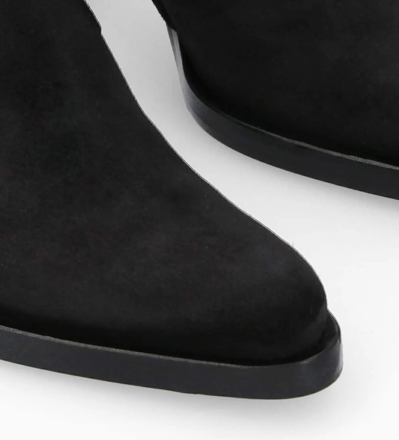 Emblématique de la maison FreeLance, la bottine Paddy est revisitée cette saison dans un cuir velours noir, affirmant une allure tant raffinée que citadine. Sa semelle extérieure épaisse et son talon de 7,5 cm se conjuguent à une fermeture discrète permettant une stabilité sans faille et un enfilage sans effort. En haut de sa tige, des lignes courbes rappelant un cache-cœur ajoutent une touche de féminité et de douceur, conférant à cette ankle boots un style résolument féminin et audacieux.