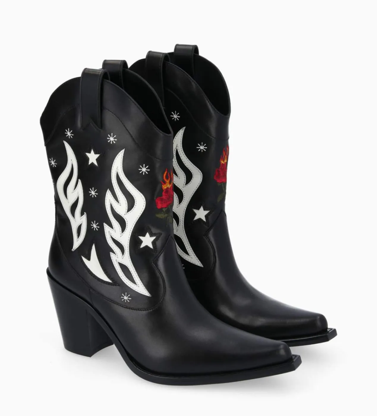 Boots Santiags en cuir lisse noir avec broderies
