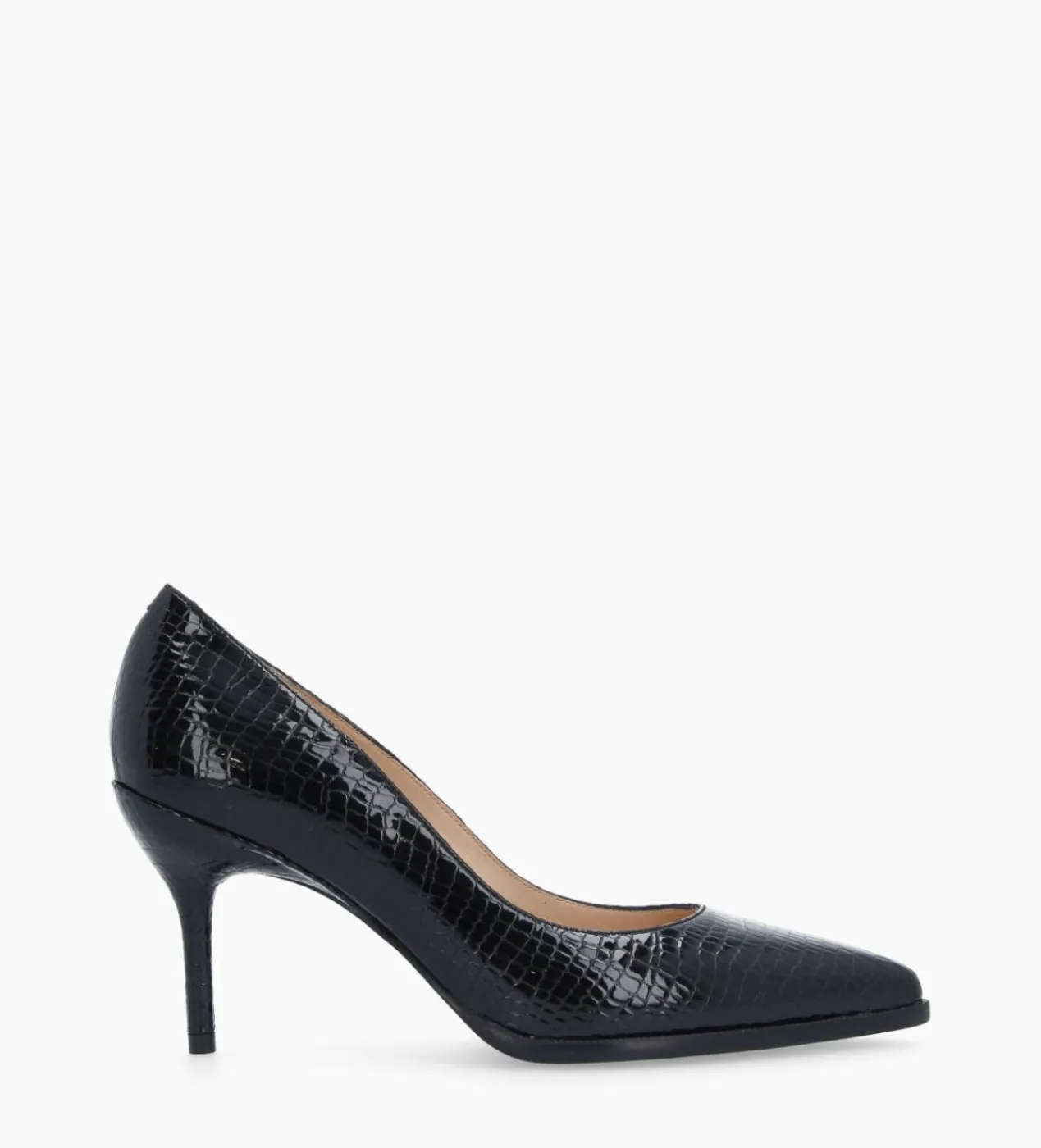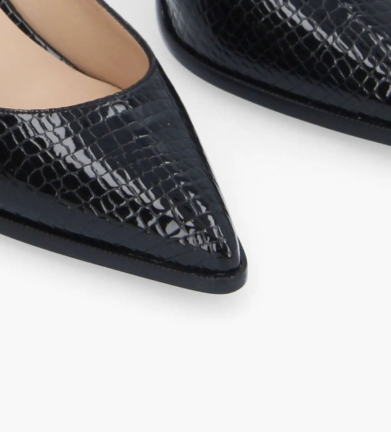 Escarpin à bout pointu en cuir verni imprimé serpent noir