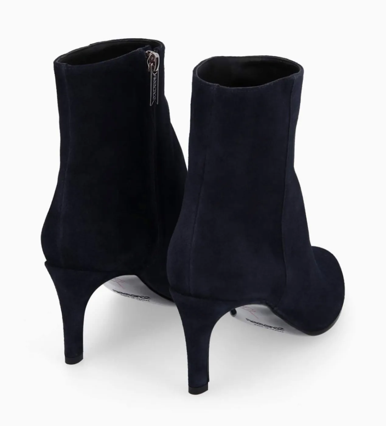 Free Lance dévoile des boots à la féminité affirmée avec les Stella. Confectionnées dans un somptueux cuir velours marine, aux accents intemporels, ces bottines viennent sublimer les tenues féminines d’une touche de raffinement. Leur silhouette effilée dotée d’un bout amande allient subtilement confort et élégance. Perchées sur un talon droit de 6,5 cm d’une finesse indéniable, ces bottines, fabriquées en France avec tout le savoir-faire de la Maison, élèvent la silhouette au sommet du chic. Leur zip intérieur facilite l’enfilage.