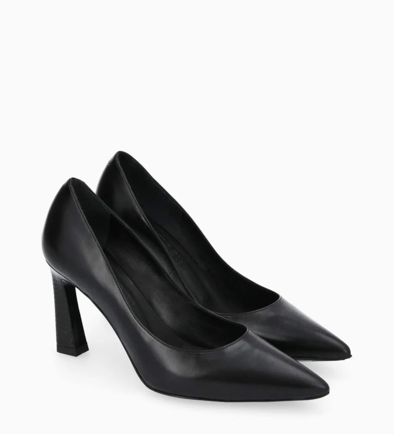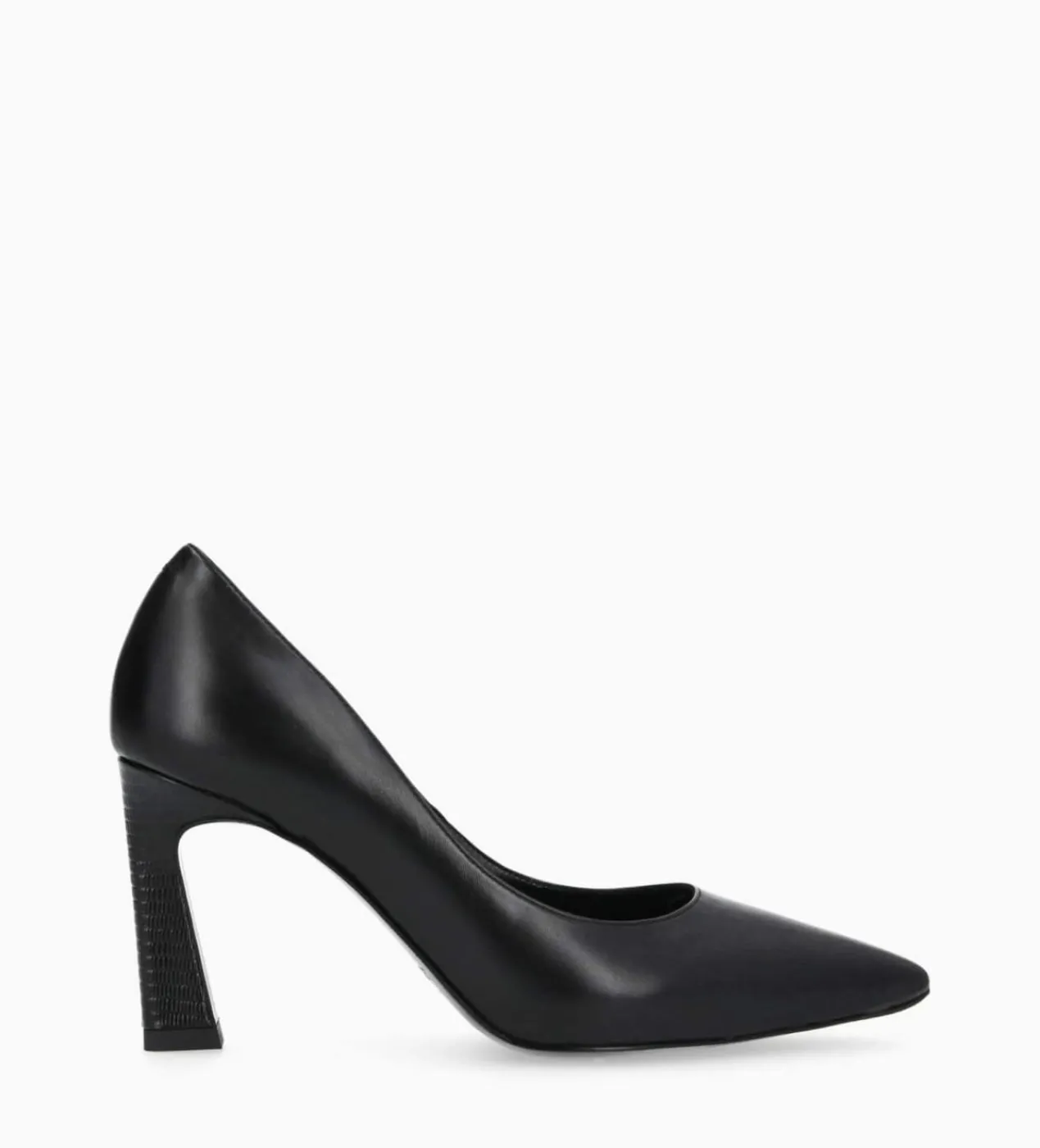 Escarpin à talons évasés en cuir lisse noir avec talon effet serpent noir
