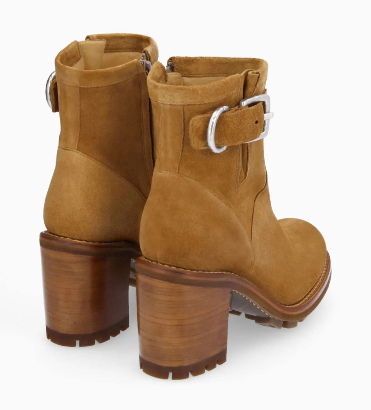Boots biker à boucle en cuir velours biscuit sur semelle crantée