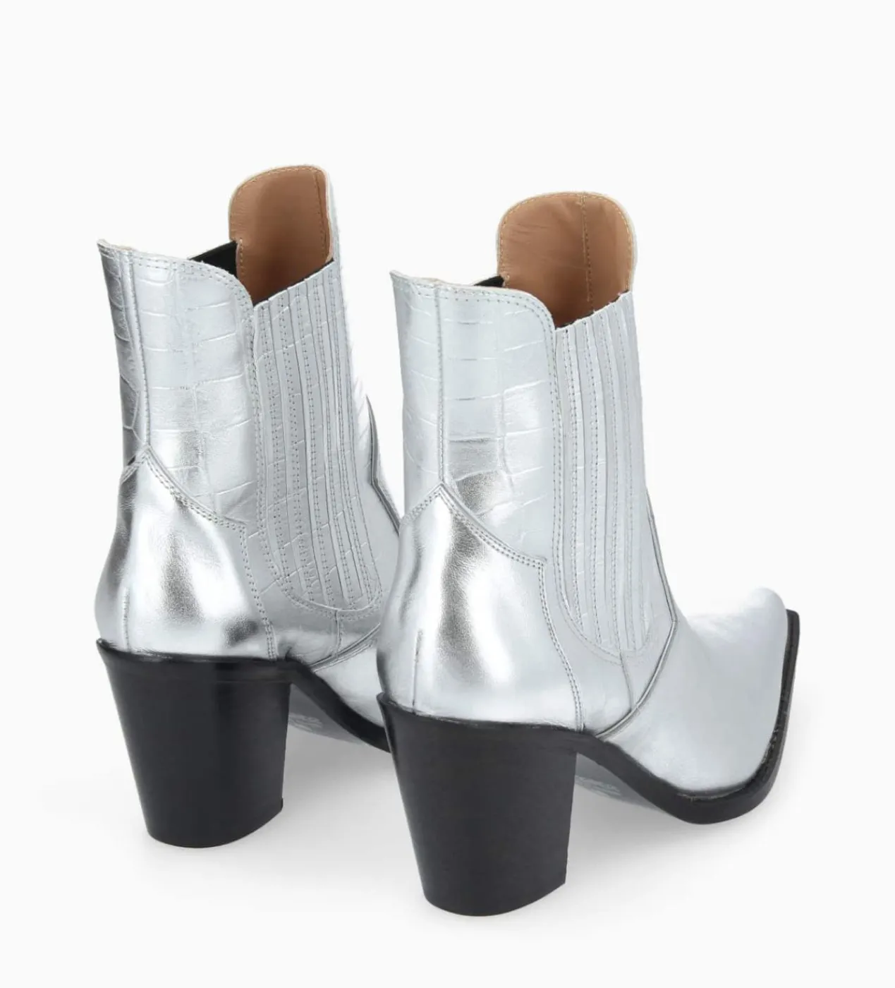 Bottines Chelsea en cuir métallisé argent