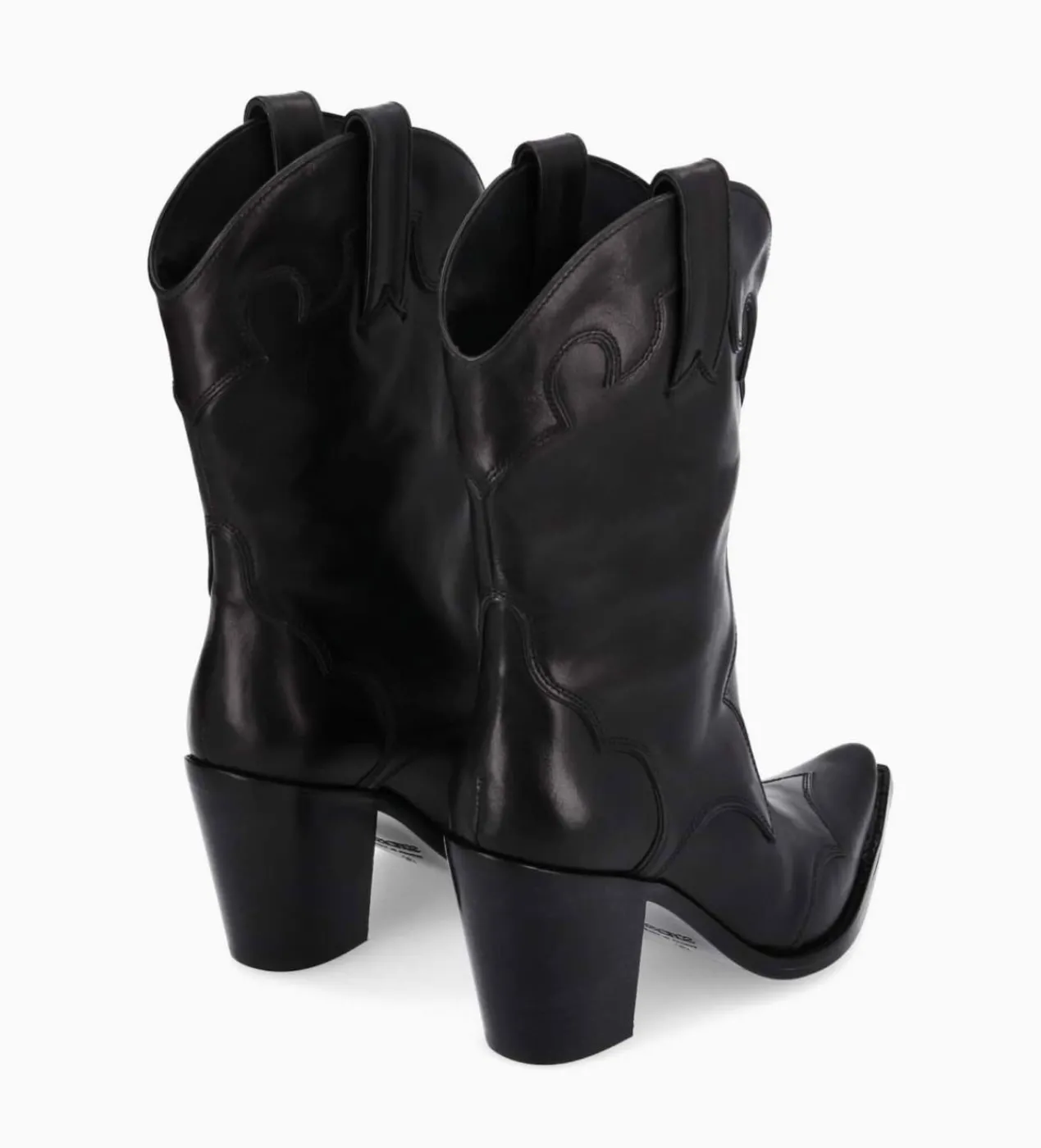 Free Lance enrichit sa collection de Santiags avec les Andy, des bottines chics et racées imaginées pour sublimer tous les looks. Fabriquées dans un splendide cuir noir, elles affichent un jeu de surpiqûres ton sur ton qui rehaussent leur style avec assurance. Ces bottines avec semelle cuir, reposent sur une trépointe à bout carré et un talon haut de 8 cm taillé en biseau. Fabriquées en France, ces bottines incarnent l’esprit d’une femme indépendante et engagée, résolument Free Lance. Les Andy sont idéales pour accessoiriser vos jupes, tailleurs, robes et pantalons.